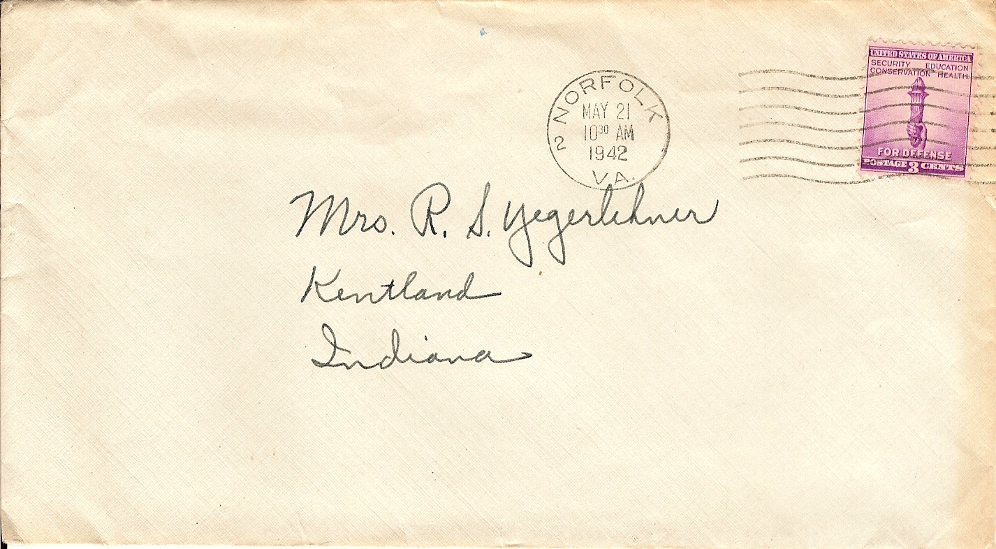 The first letter has the postmark on May 21, 1942 10:30 AM.  It was sent from Norfolk, Virginia. My grandfather was 38.  He was about to be gone from his family for two years.  He wouldn’t see his youngest son until he was 18 months old.  But he was one of the lucky ones, he made it home.