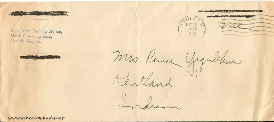 Series I: World War II Correspondence – Roscoe & Gladys (Foster) Yegerlehner, 1942-1946