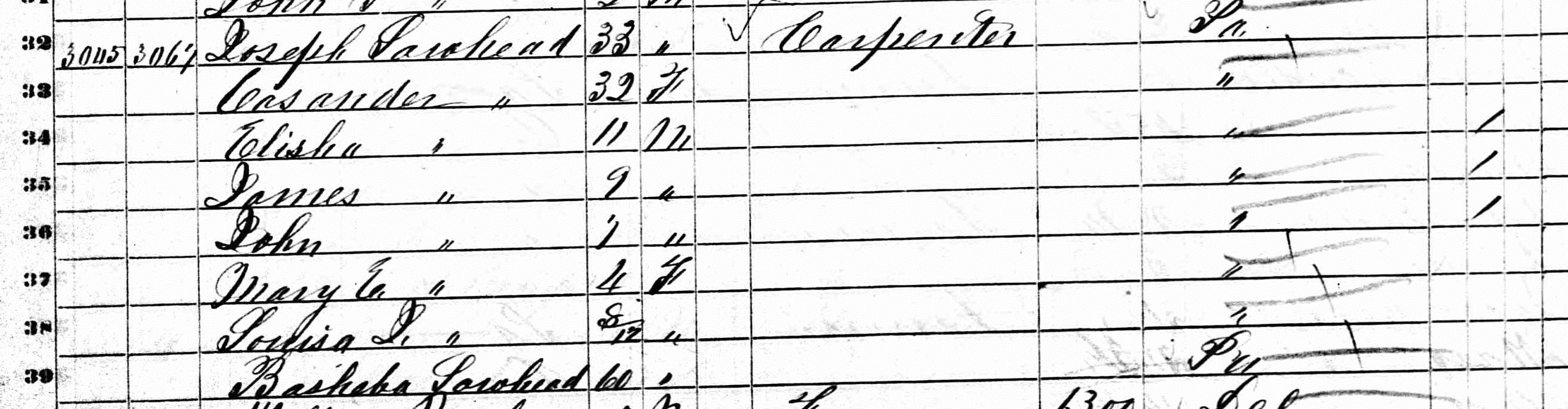 Joseph Lawhead – 1850 Census ← Previous Next → 1850 Census Seneca, Belmont County, Ohio for the family of Joseph Lawhead