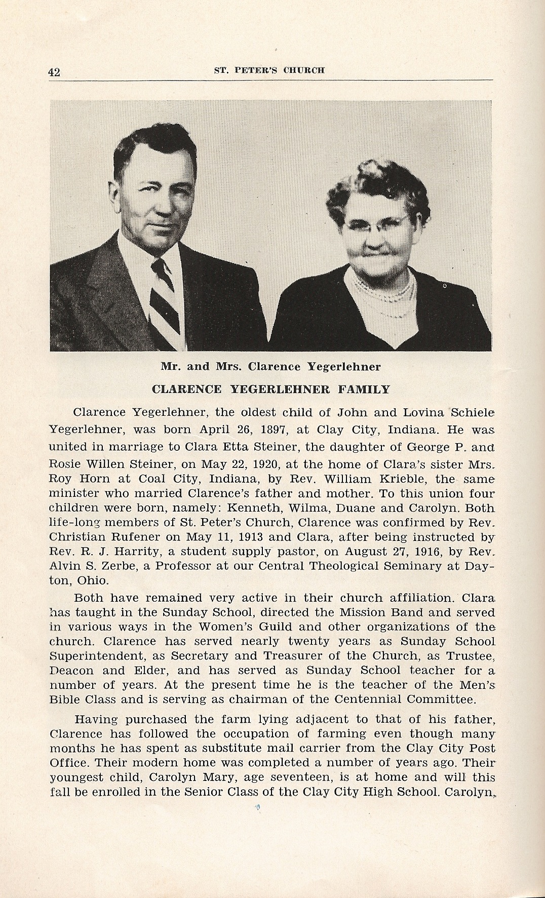 Yegerlehner, Clarence – St. Peters Church biography, 1954, p. 1 ← Previous Next → Biography of Clarence, p.1