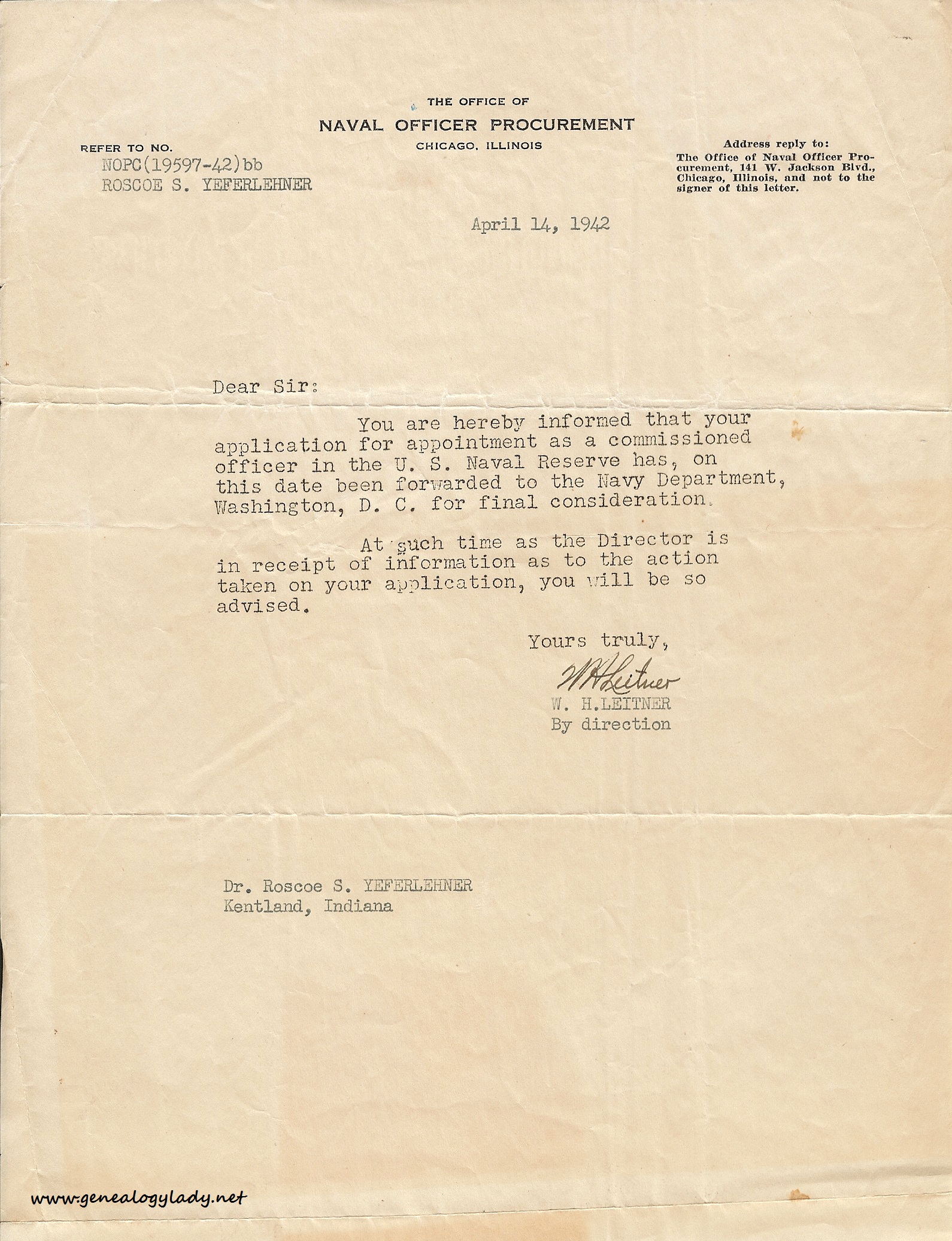 1942-04-14 – Commission forwarded ← Previous Next → Notification that Roscoe’s application is being forwarded to Washington, DC