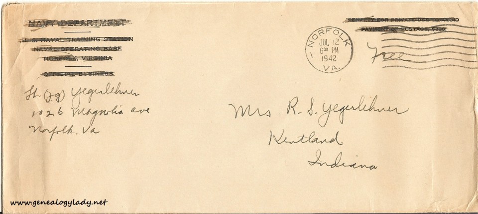 Series I: World War II Correspondence – Roscoe & Gladys (Foster) Yegerlehner, 1942-1946