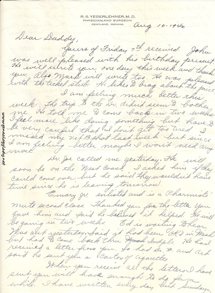 Series I: World War II Correspondence – Roscoe & Gladys (Foster) Yegerlehner, 1942-1946