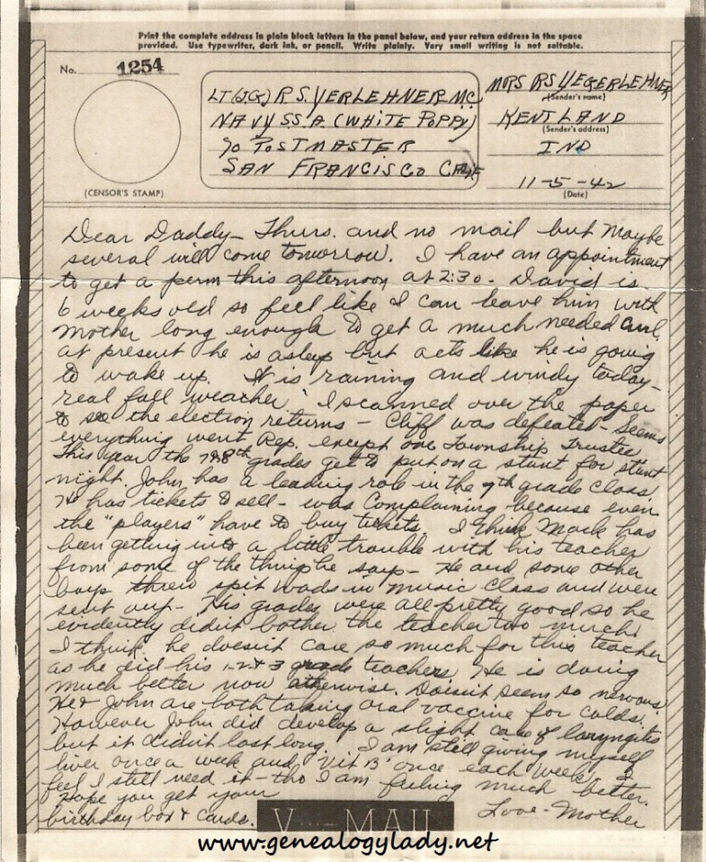 V-mail, dated November 5, 1942