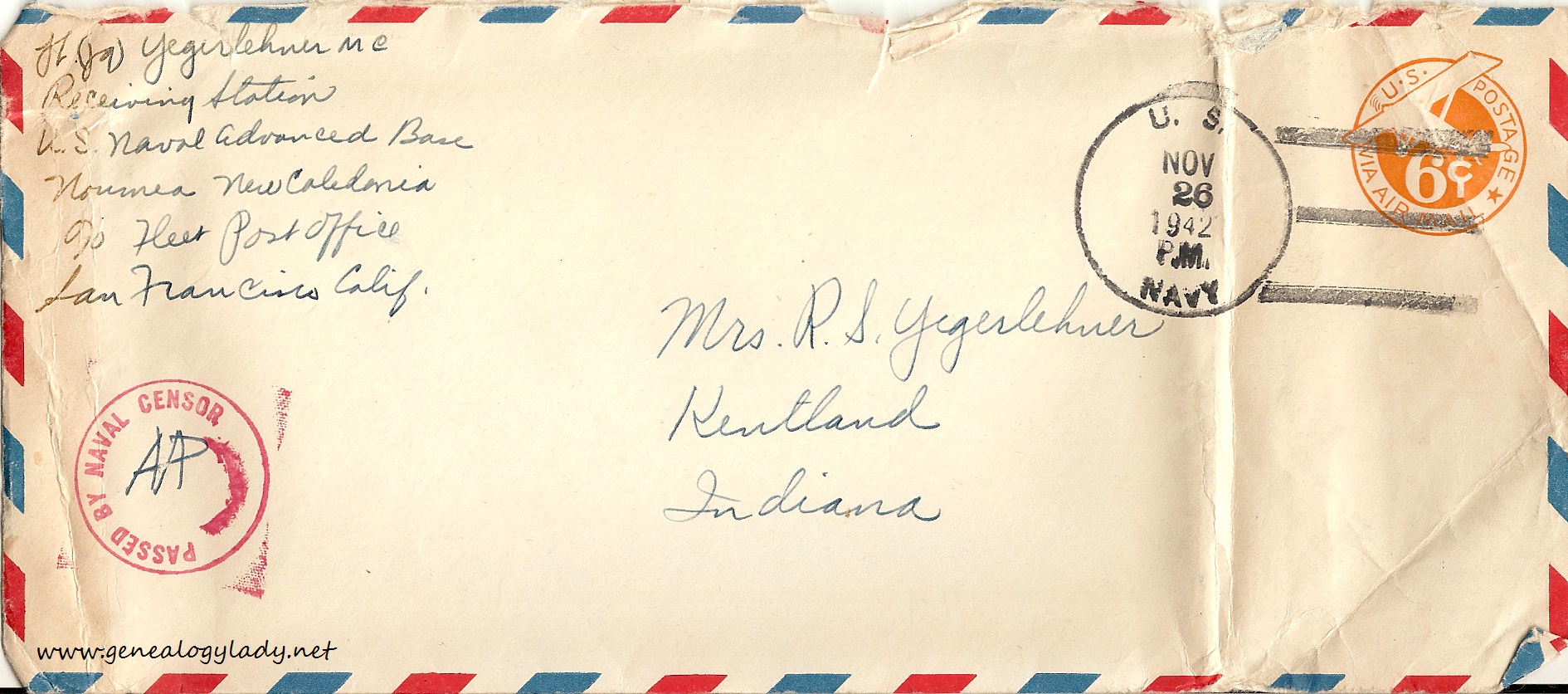 Series I: World War II Correspondence – Roscoe & Gladys (Foster) Yegerlehner, 1942-1946