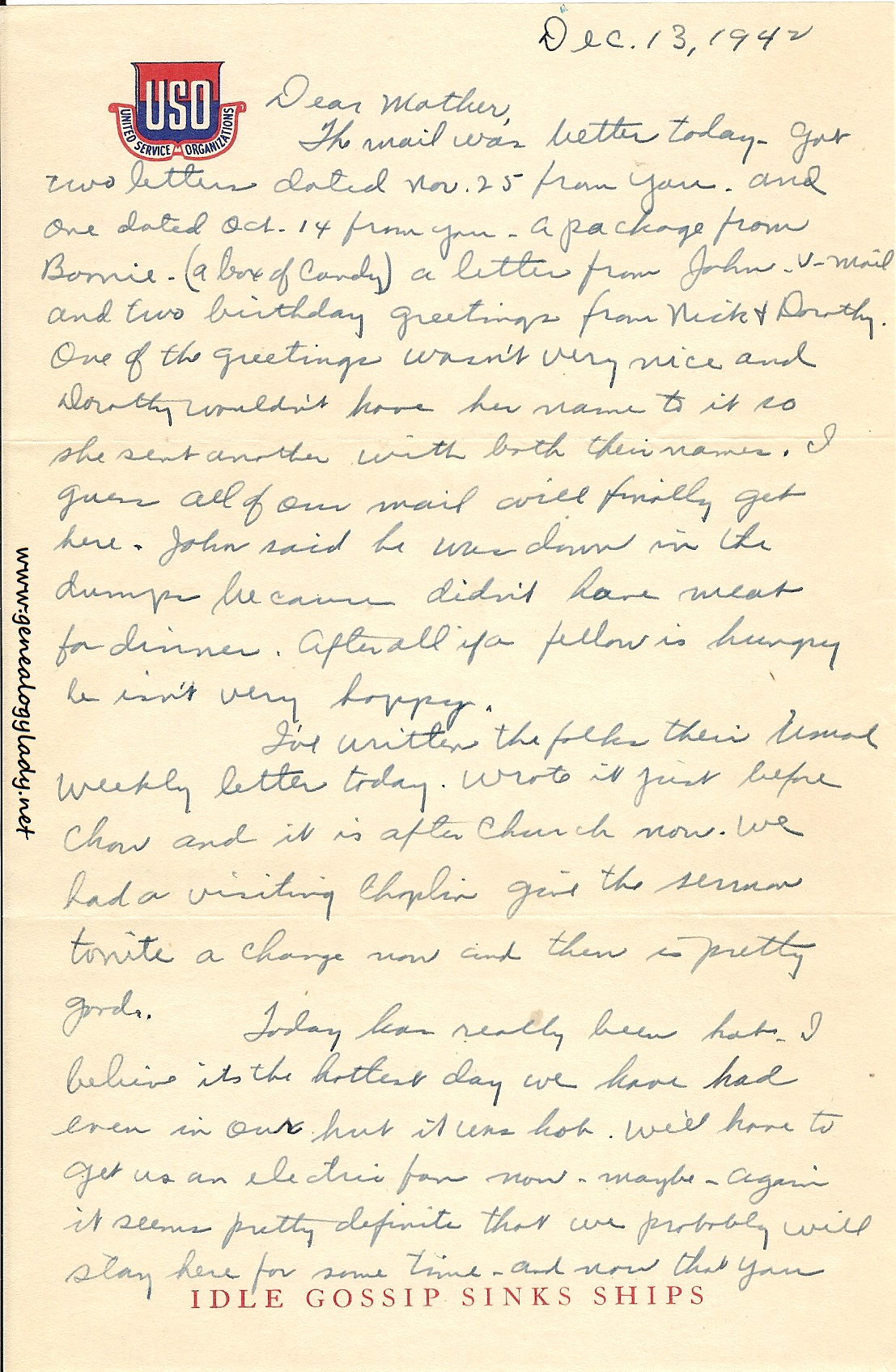 Series I: World War II Correspondence – Roscoe & Gladys (Foster) Yegerlehner, 1942-1946