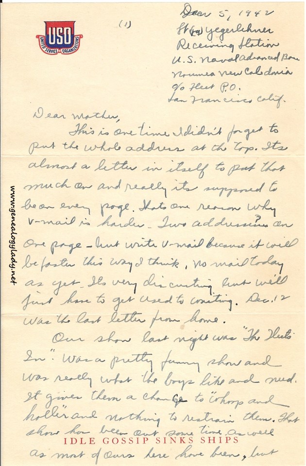 Series I: World War II Correspondence – Roscoe & Gladys (Foster) Yegerlehner, 1942-1946