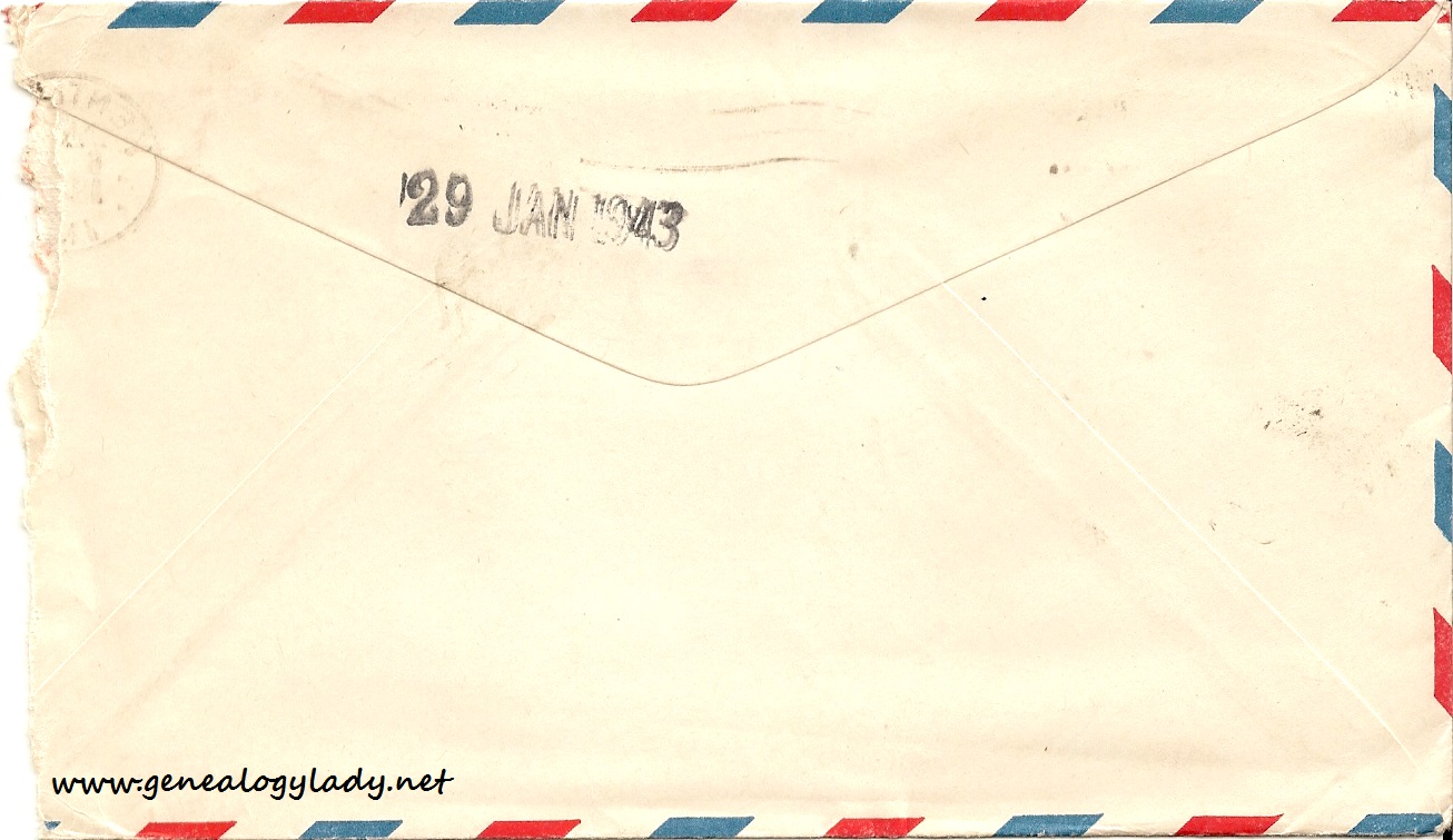 January 5, 1943 Envelope back