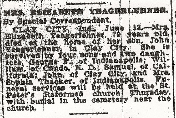 Yegerlehner, Elizabeth – Obituary, 1922