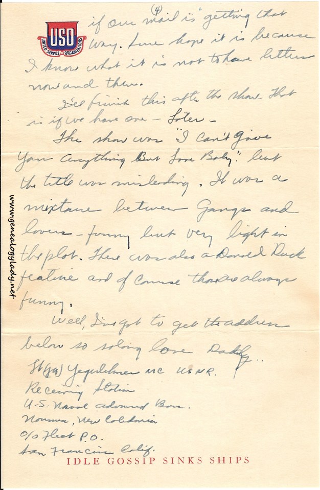 Series I: World War II Correspondence – Roscoe & Gladys (Foster) Yegerlehner, 1942-1946