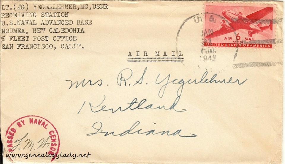 Series I: World War II Correspondence – Roscoe & Gladys (Foster) Yegerlehner, 1942-1946