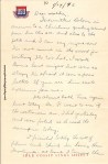 [page 2] over to a fellow who said he would have them developed. If you say I’m getting fat this time I guess I’ll have to start reducing. Maybe I have gained 3-4 pounds – but once I get home your cooking will take care of that. Just kidding – our diet is so top heavy with carbohydrate that I’m not surprised at weight gain and I don’t get any more exercise than I did at home. Of course, we don’t have cars here but we don’t need them we are right here.