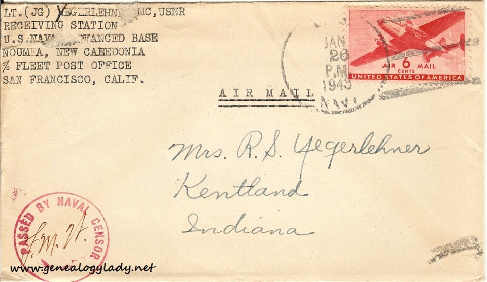 Series I: World War II Correspondence – Roscoe & Gladys (Foster) Yegerlehner, 1942-1946