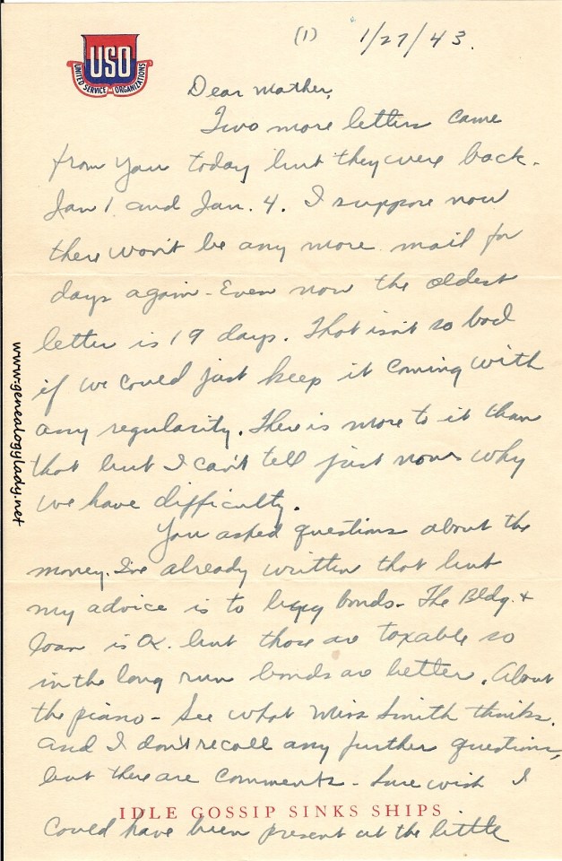 Series I: World War II Correspondence – Roscoe & Gladys (Foster) Yegerlehner, 1942-1946