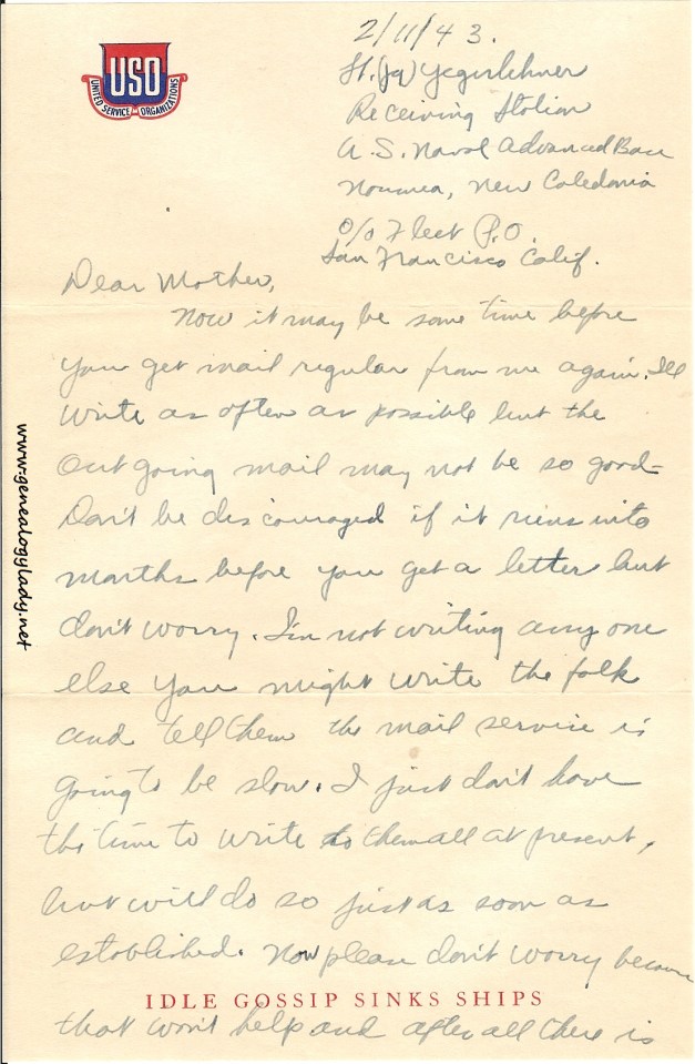 Series I: World War II Correspondence – Roscoe & Gladys (Foster) Yegerlehner, 1942-1946