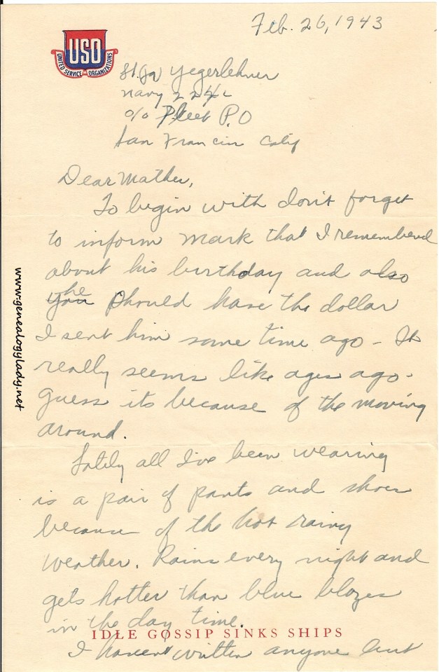 Series I: World War II Correspondence – Roscoe & Gladys (Foster) Yegerlehner, 1942-1946