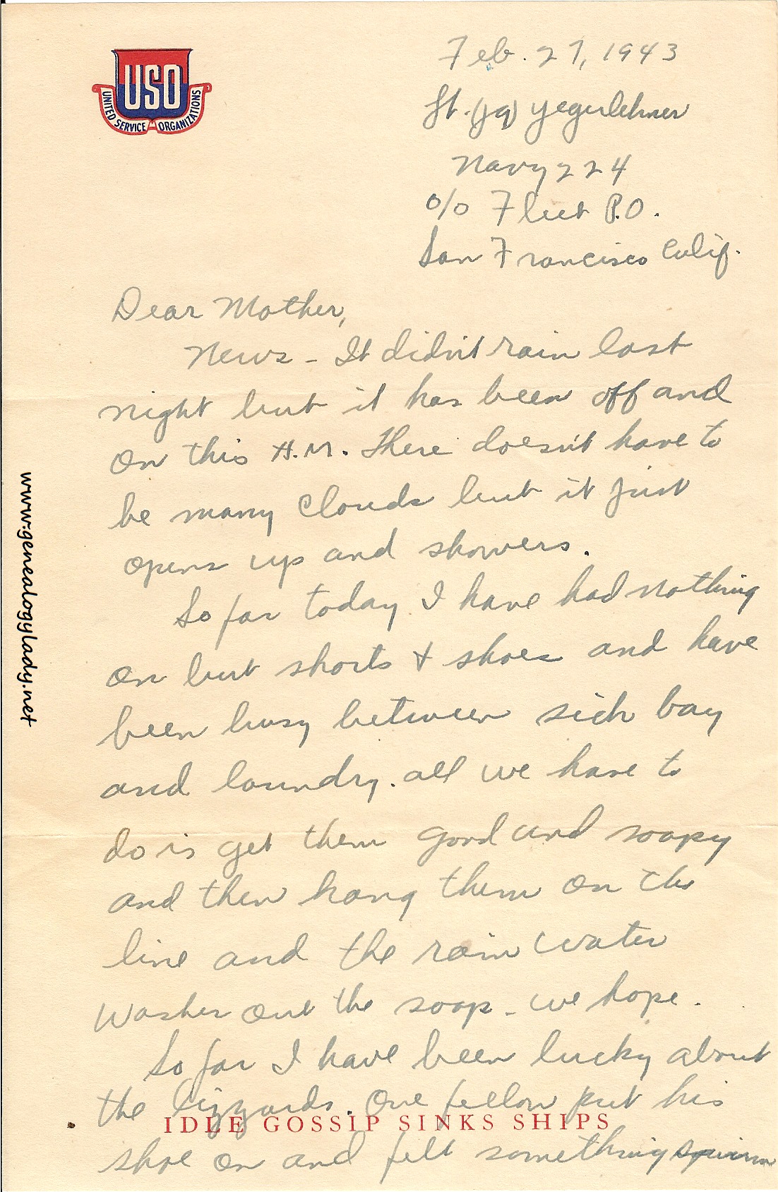 Series I: World War II Correspondence – Roscoe & Gladys (Foster) Yegerlehner, 1942-1946