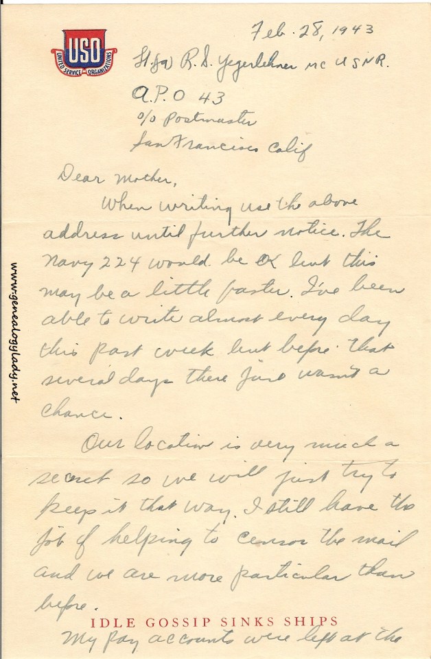 Series I: World War II Correspondence – Roscoe & Gladys (Foster) Yegerlehner, 1942-1946