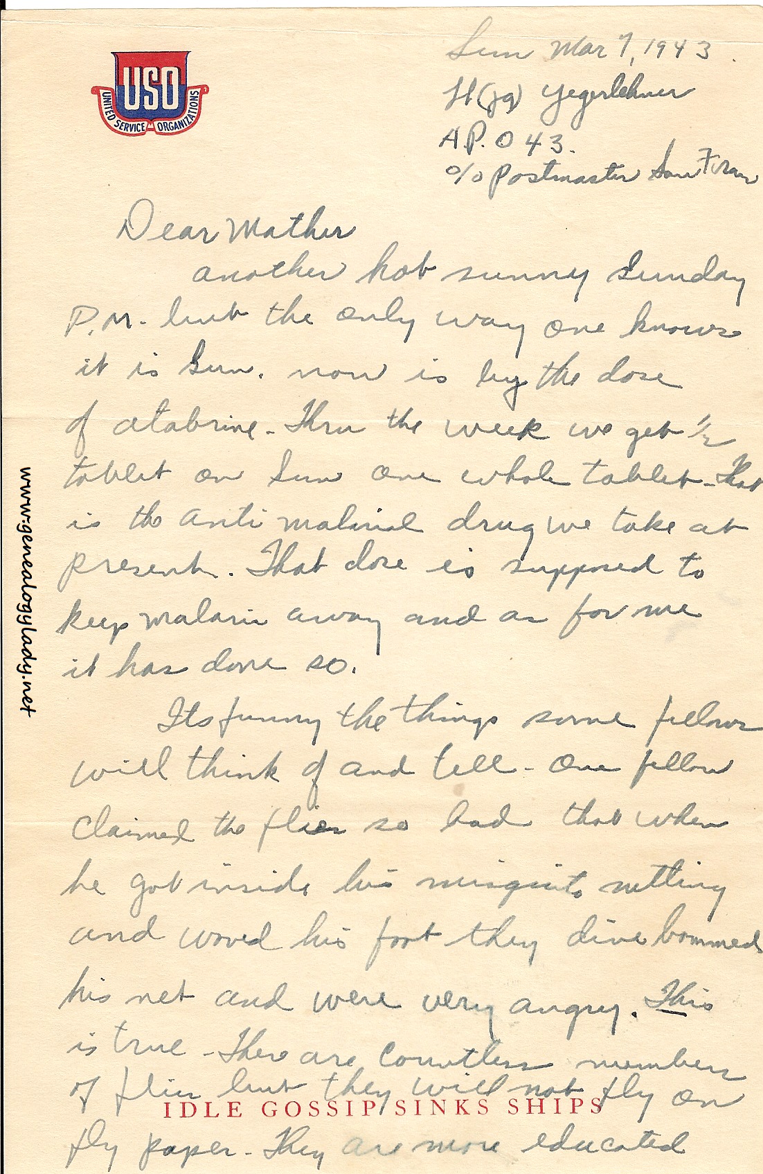 Series I: World War II Correspondence – Roscoe & Gladys (Foster) Yegerlehner, 1942-1946