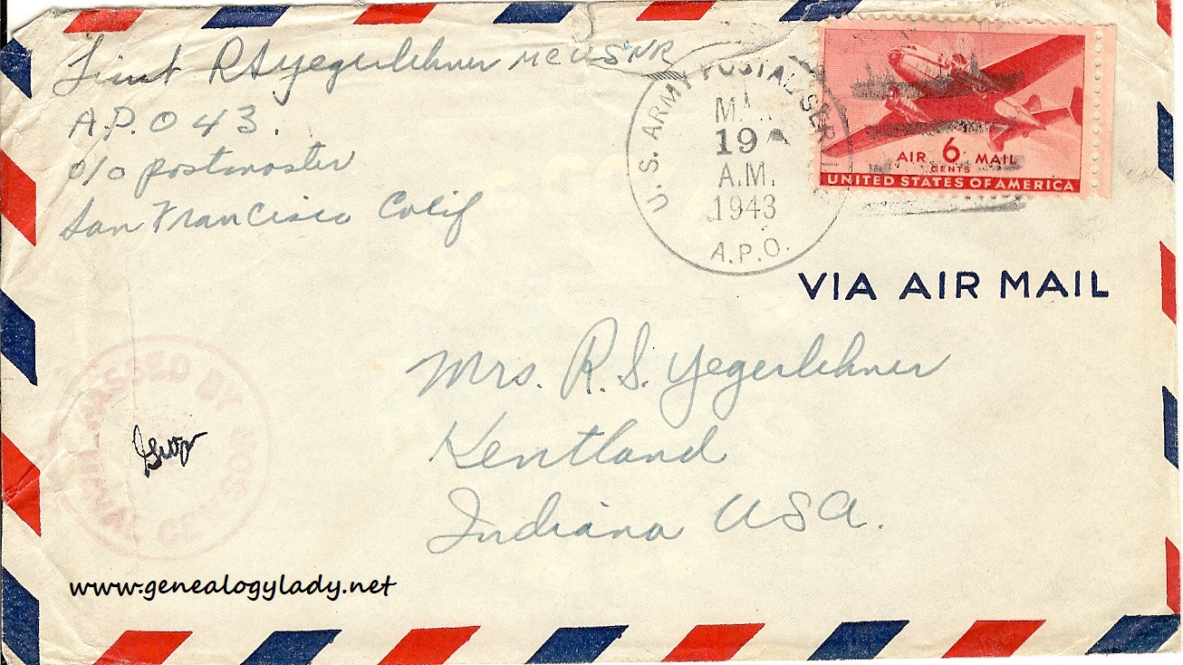 Series I: World War II Correspondence – Roscoe & Gladys (Foster) Yegerlehner, 1942-1946