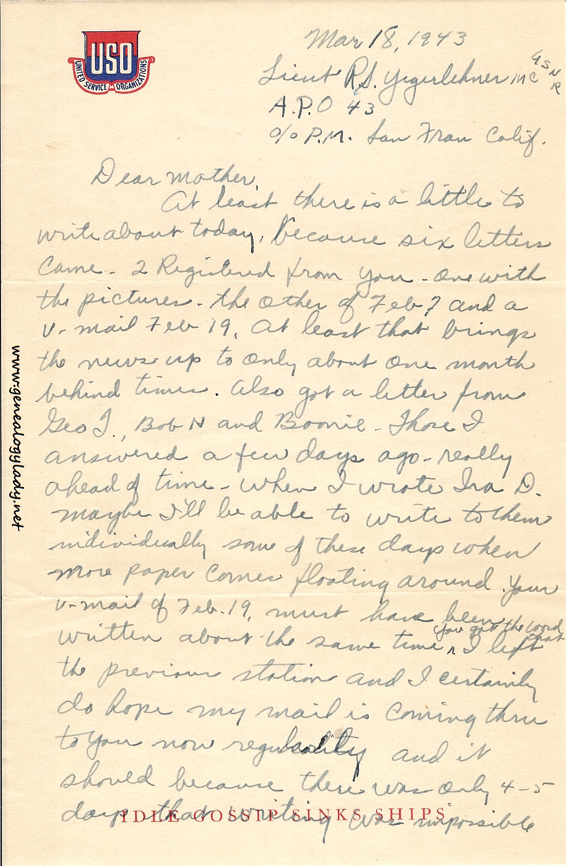 Series I: World War II Correspondence – Roscoe & Gladys (Foster) Yegerlehner, 1942-1946