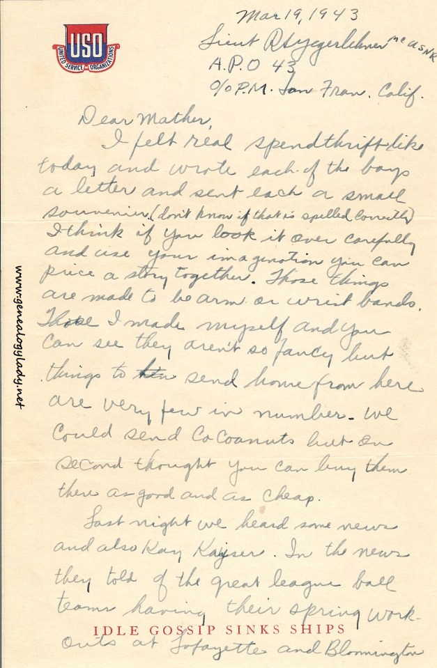 Series I: World War II Correspondence – Roscoe & Gladys (Foster) Yegerlehner, 1942-1946