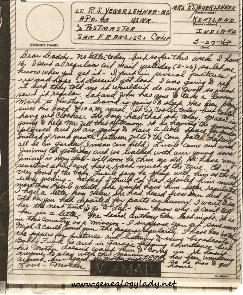 Series I: World War II Correspondence – Roscoe & Gladys (Foster) Yegerlehner, 1942-1946