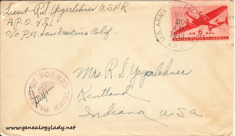 Series I: World War II Correspondence – Roscoe & Gladys (Foster) Yegerlehner, 1942-1946