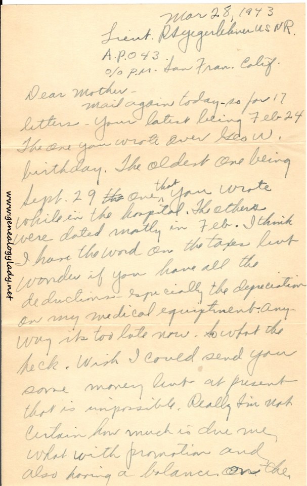 Series I: World War II Correspondence – Roscoe & Gladys (Foster) Yegerlehner, 1942-1946
