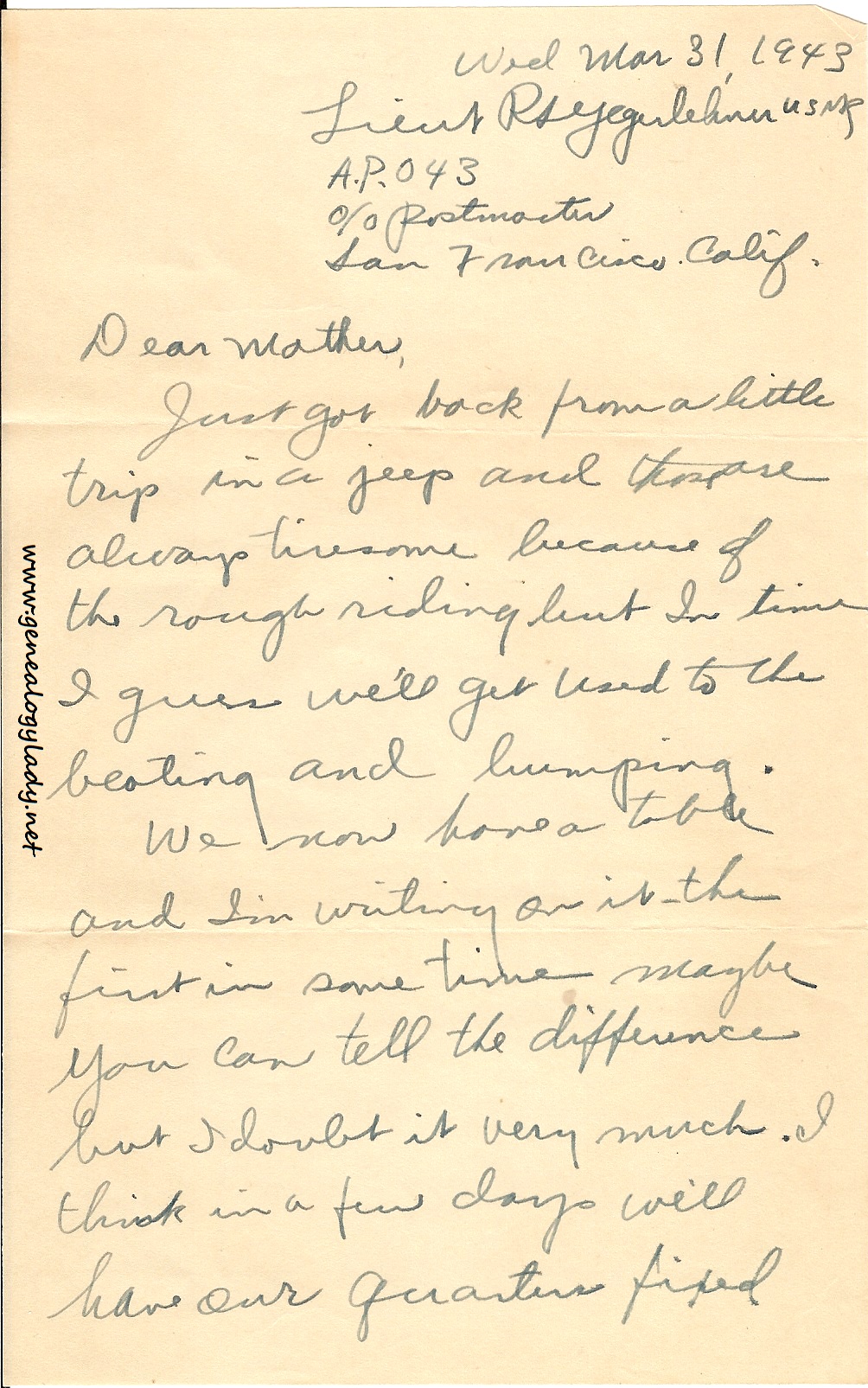 Series I: World War II Correspondence – Roscoe & Gladys (Foster) Yegerlehner, 1942-1946