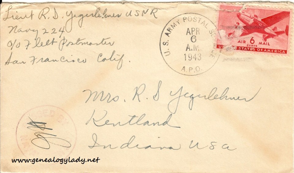 Series I: World War II Correspondence – Roscoe & Gladys (Foster) Yegerlehner, 1942-1946