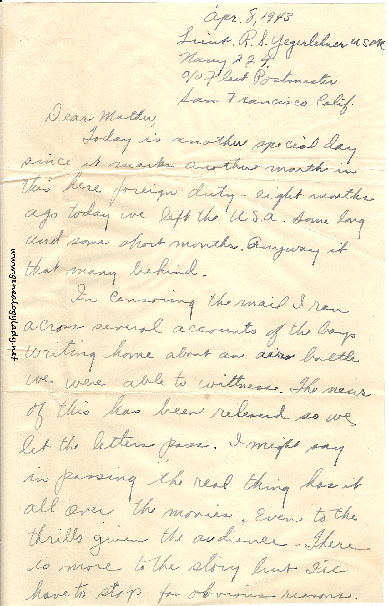 Series I: World War II Correspondence – Roscoe & Gladys (Foster) Yegerlehner, 1942-1946