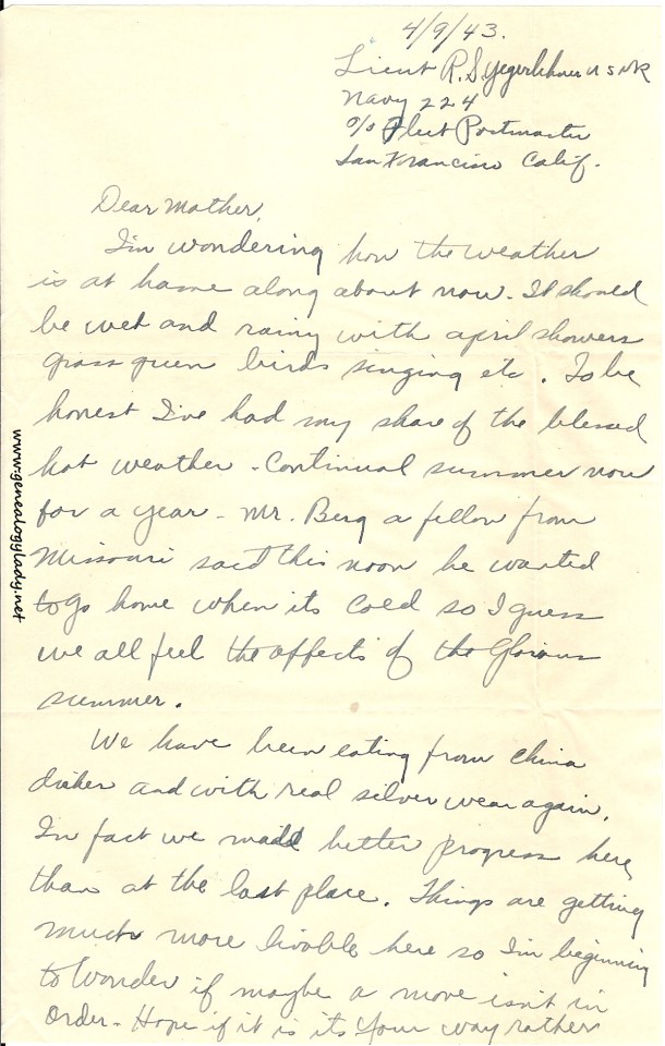 Series I: World War II Correspondence – Roscoe & Gladys (Foster) Yegerlehner, 1942-1946