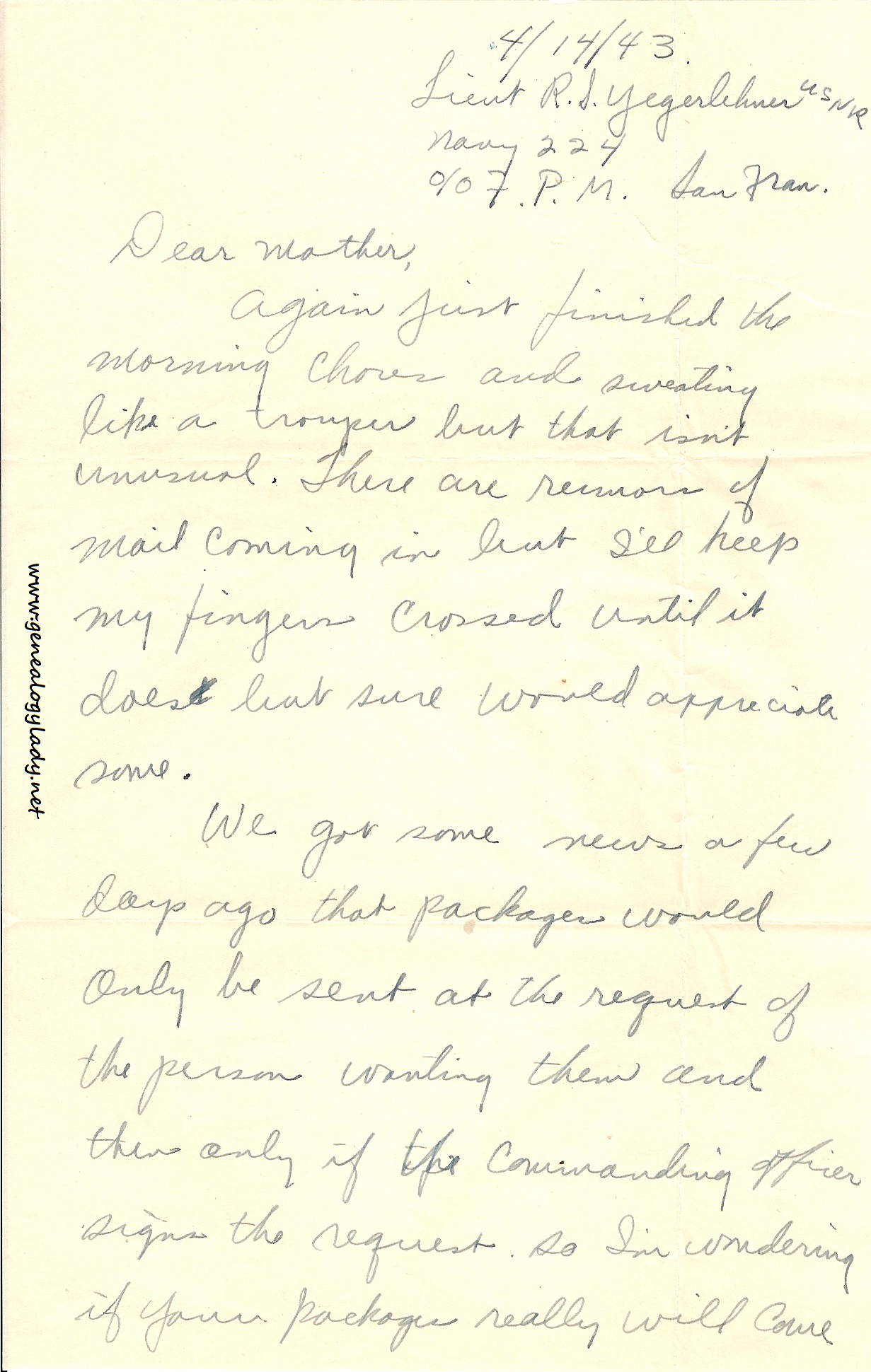 Series I: World War II Correspondence – Roscoe & Gladys (Foster) Yegerlehner, 1942-1946