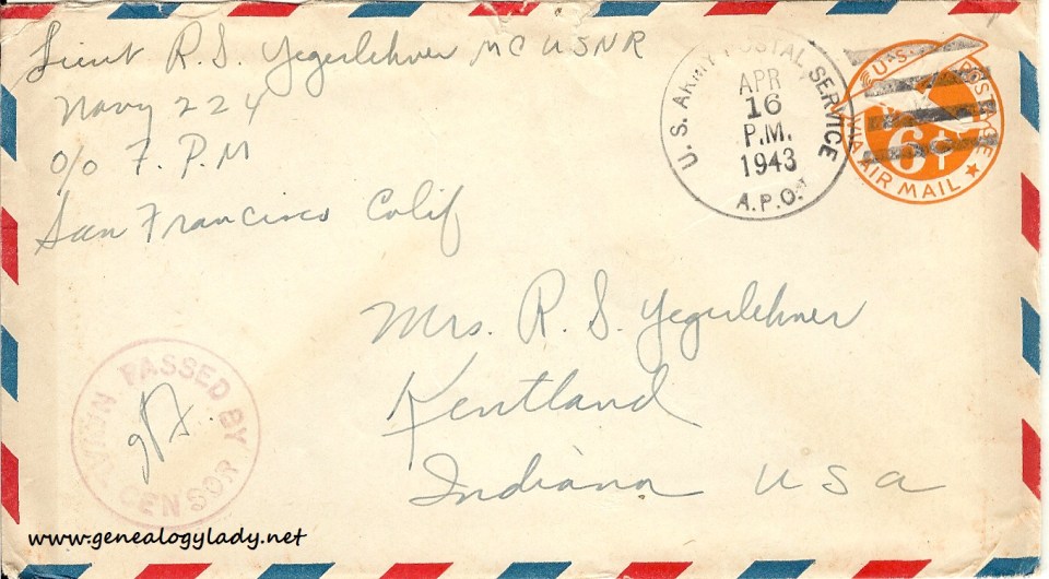 Series I: World War II Correspondence – Roscoe & Gladys (Foster) Yegerlehner, 1942-1946