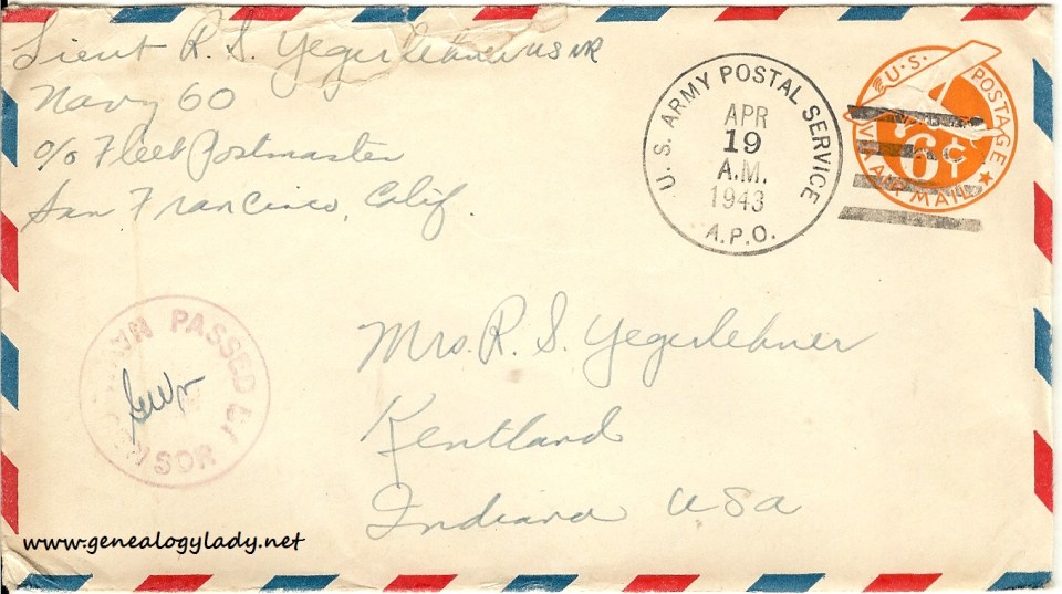 Series I: World War II Correspondence – Roscoe & Gladys (Foster) Yegerlehner, 1942-1946