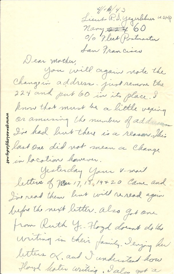 Series I: World War II Correspondence – Roscoe & Gladys (Foster) Yegerlehner, 1942-1946