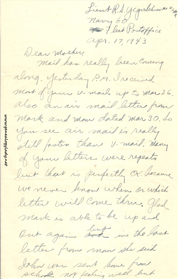 Series I: World War II Correspondence – Roscoe & Gladys (Foster) Yegerlehner, 1942-1946