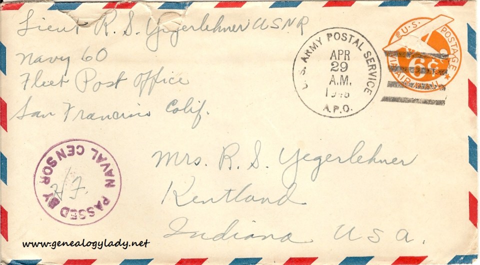Series I: World War II Correspondence – Roscoe & Gladys (Foster) Yegerlehner, 1942-1946