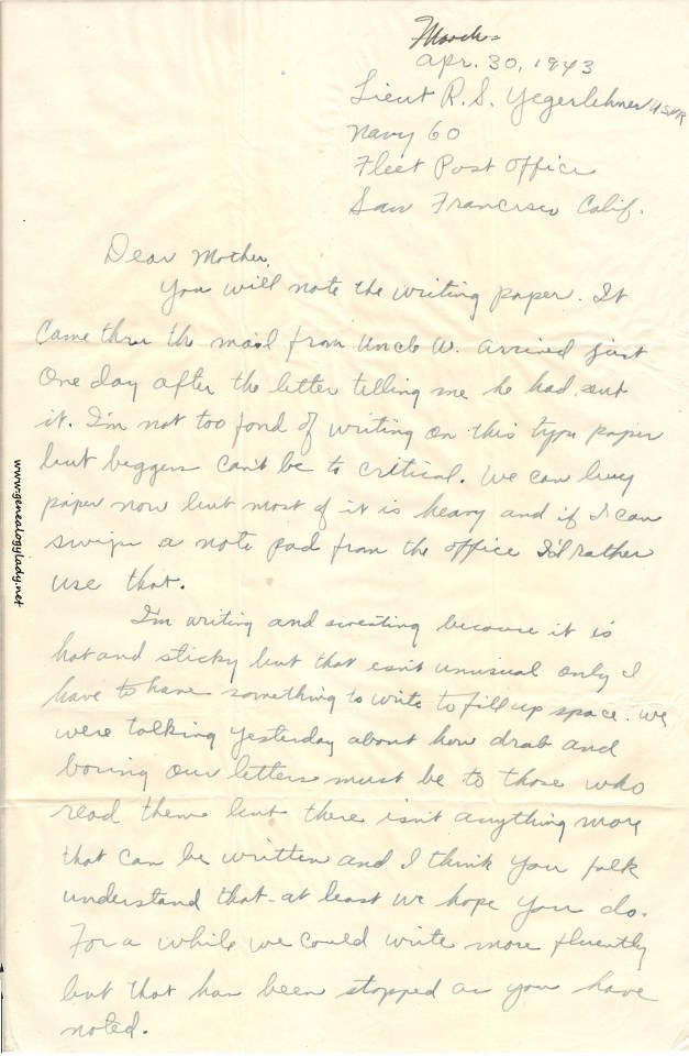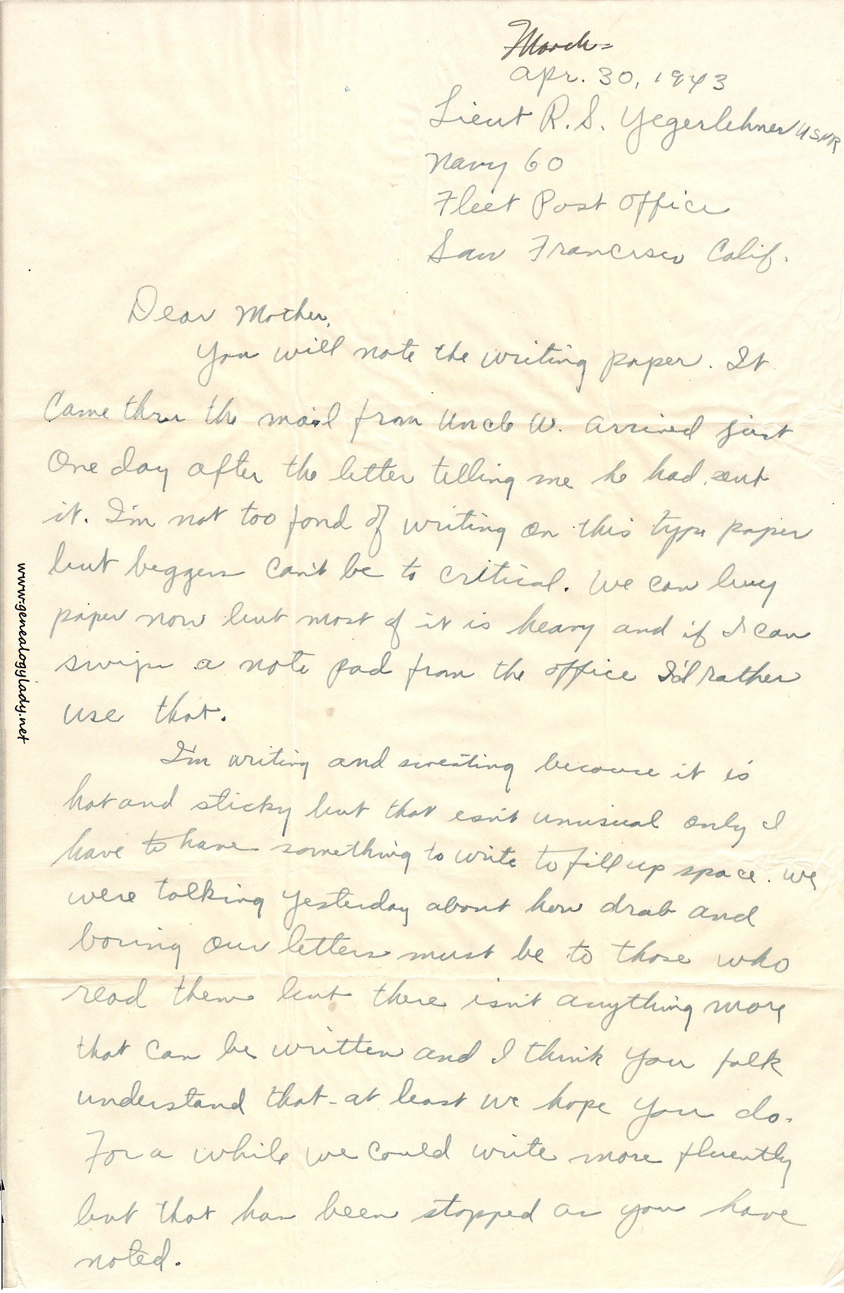 Series I: World War II Correspondence – Roscoe & Gladys (Foster) Yegerlehner, 1942-1946