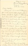 [page 3] Glad to hear my letters are coming to you as well as they are and I sure wish mine would come as often. The latest I have now came in 23 days so you see yours go about twice as fast as mine. There is a reason for that however and I doubt if ours will ever be much better – but switch back to air mail with only an occasional v-mail as I told you before.