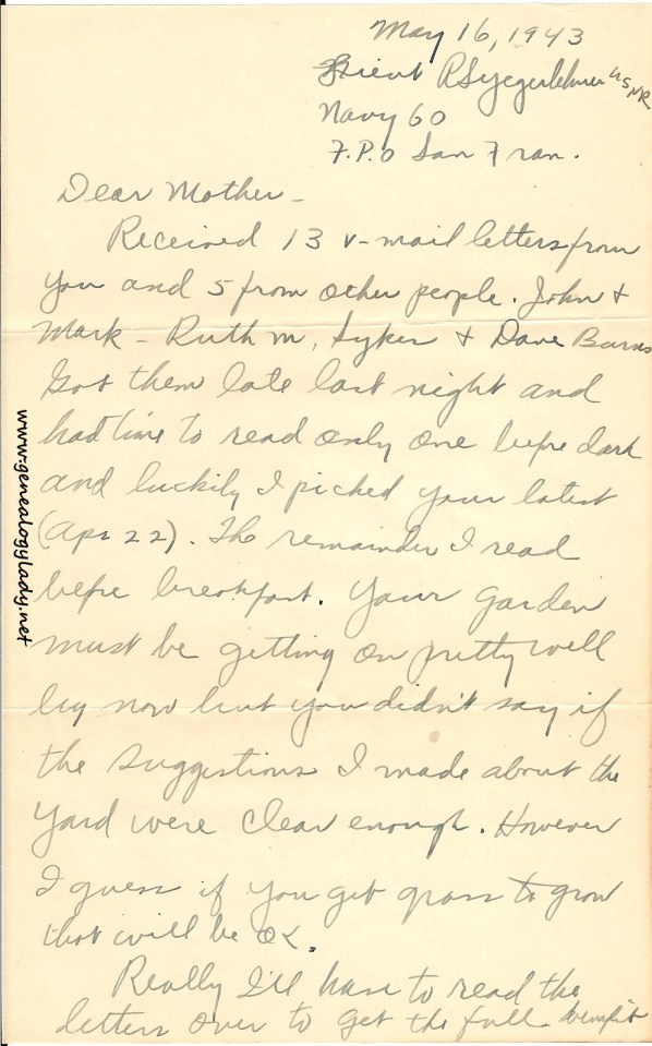 Series I: World War II Correspondence – Roscoe & Gladys (Foster) Yegerlehner, 1942-1946