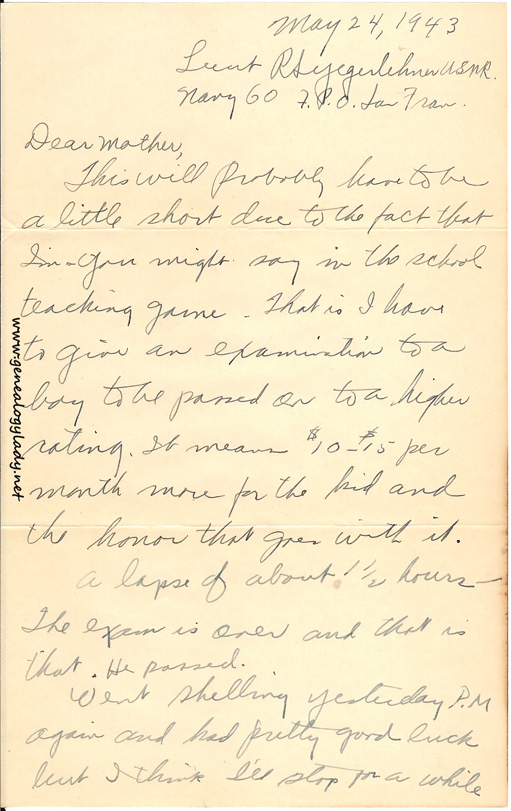 Series I: World War II Correspondence – Roscoe & Gladys (Foster) Yegerlehner, 1942-1946