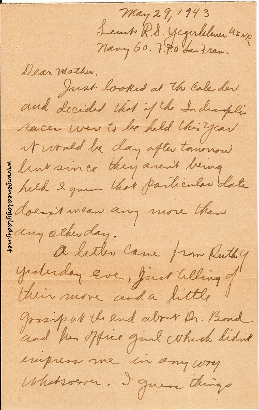 Series I: World War II Correspondence – Roscoe & Gladys (Foster) Yegerlehner, 1942-1946