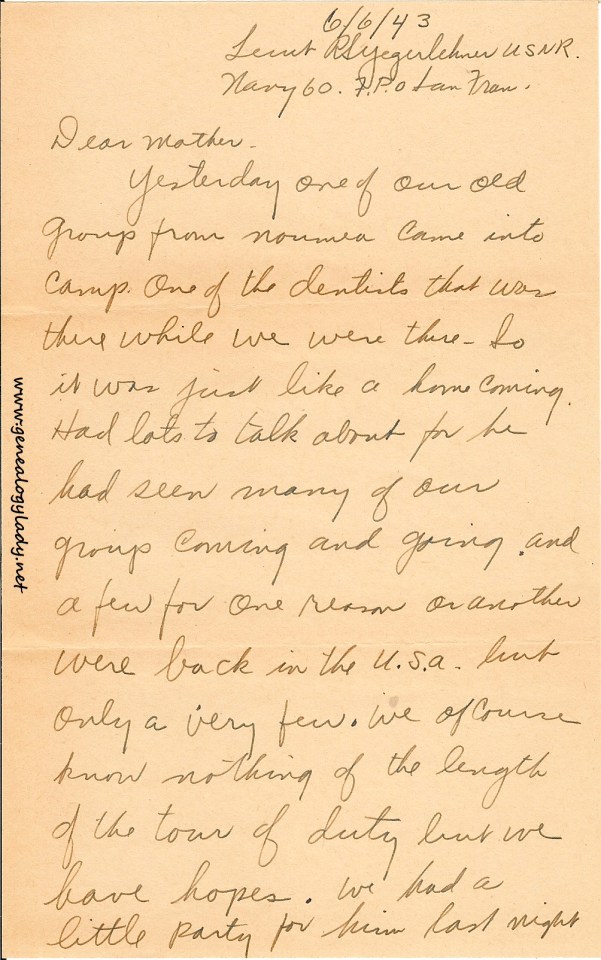 Series I: World War II Correspondence – Roscoe & Gladys (Foster) Yegerlehner, 1942-1946
