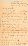 Finally got some mail from you – your air mail letters of May 15-16 and May 17, and v-mail of May 12, 21 and 22. The v-mail was latest but Geo and another fellow got air mail dated May 28 – somehow it just doesn’t seem I score as well as I used to, but I won’t complain as long as they keep coming, but as I advised write each every other time if possible to do so. Mark’s letter was in with yours of