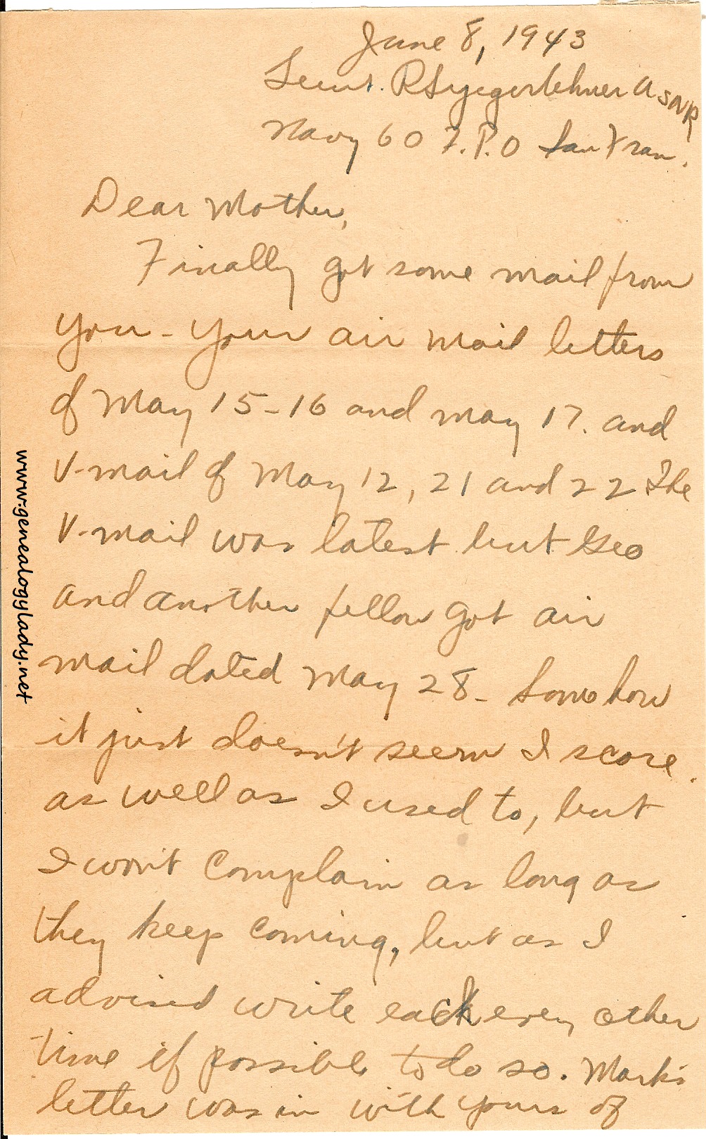 Series I: World War II Correspondence – Roscoe & Gladys (Foster) Yegerlehner, 1942-1946