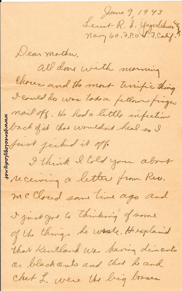 Series I: World War II Correspondence – Roscoe & Gladys (Foster) Yegerlehner, 1942-1946