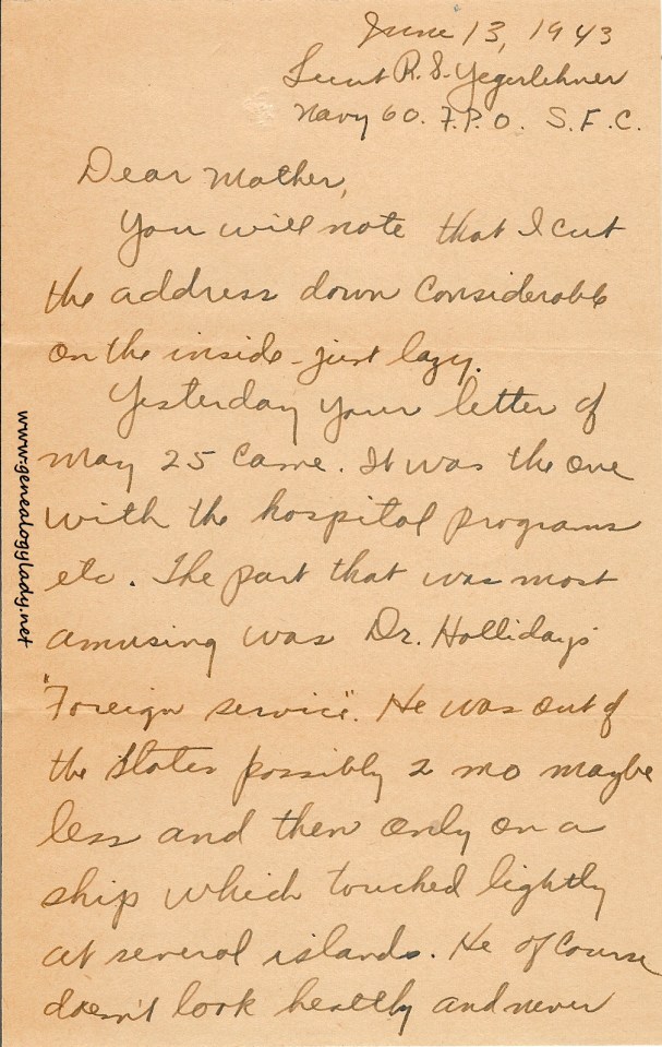 Series I: World War II Correspondence – Roscoe & Gladys (Foster) Yegerlehner, 1942-1946