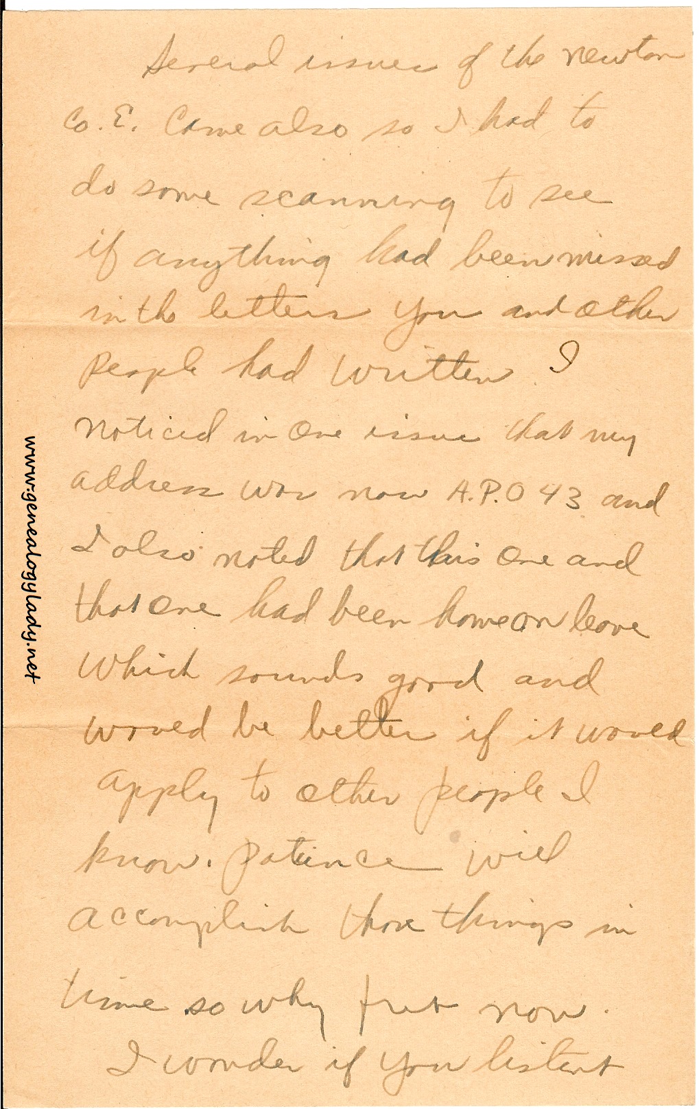 Series I: World War II Correspondence – Roscoe & Gladys (Foster) Yegerlehner, 1942-1946